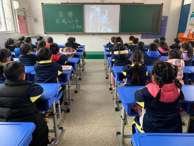 一个个小小少年在班主任老师的组织带领下,用心地欣赏着影片,他们认真、坚定的表情,显示出了对雷锋叔叔的崇敬,对学习雷锋精神的信念。
