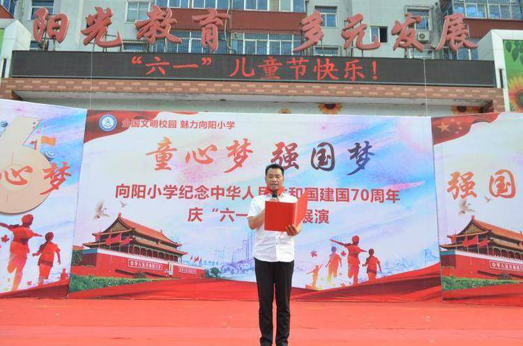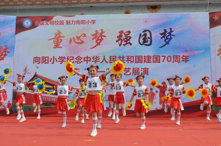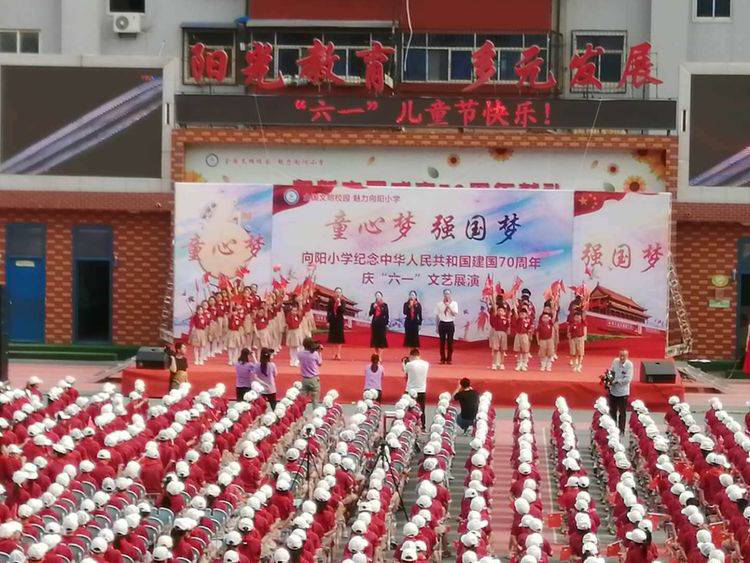 我们的70载,承载了黄天厚土的爱,我们的70载,扎根沃土,酿造芬芳,宣誓初心不改,我们的70载像万里江河澎湃,面朝大海,春暖花开。70年栉风沐雨,中华民族让汗水染绿神州,让春天永驻华夏;向阳小学凝聚童心筑梦的精神力量,激发继续奋斗的责任担当。展演虽然圆满落幕,向阳师生积极饱满的精神风貌和昂扬向上的豪迈斗志不会停歇,全体向阳人将在上级领导的温暖关怀下,在郝红梅校长的精准领导下,引领“全国文明校园 魅力阳光教育”扬帆远航。高瞻远瞩新征程,初心不改情满怀,建功立业新时代!