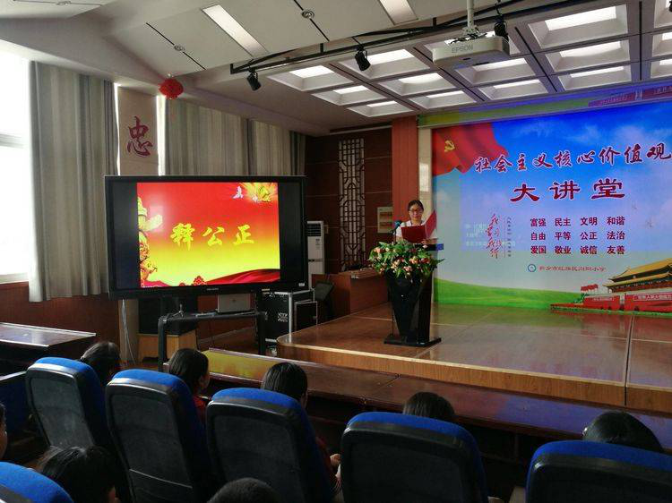2019年6月12日下午,新乡市红旗区向阳小学五二班全体学生及部分家长在四楼会议室共同举办了以“公正”为主题的社会主义核心价值观大讲堂活动。
