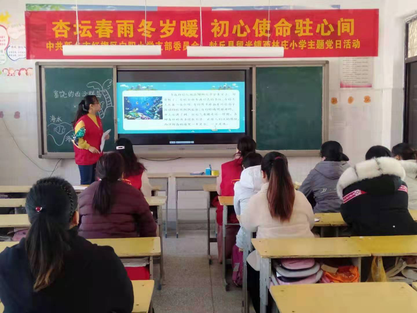 并围绕“入党初心是什么、党员使命担什么、对照先进差什么、立足本职做什么”,进行了“初心四问”主题教育,给西林庄小学全体教师春风化雨般的思想启迪,使教师们以更加积极的态度投入到本职工作中,为“春雨行动”献上了宝贵的精神食粮。