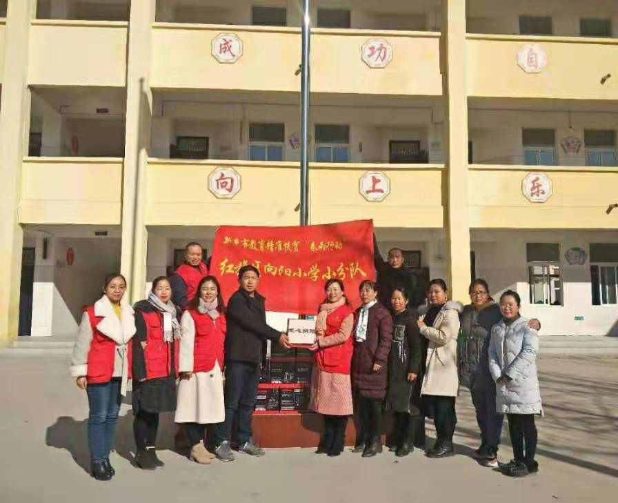 为切实抓好精准扶贫,加大“春雨行动”帮扶力度,2019年12月3日,中共新乡市红旗区向阳小学党支部的5名党员,在郝红梅校长的带领下,驱车100多公里来到了封丘县留光镇西林庄小学,将“不忘初心、牢记使命”镶嵌在春雨行动的路上。