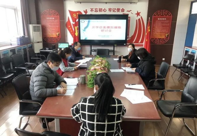 2020年3月13日下午,红旗区向阳小学开展了开学前疫情防控仿真演练,模拟学生复学后入校、入班、上课、放学一系列过程,并针对突发的应急状况进行仿真演练,为顺利复学时刻做好准备。 演练前向阳小学召开疫情防控开学前仿真演练落实会,防控领导、全体班主任及隔离组、心理疏导组人员参与会议。郭国文副校长首先对演练方案进行详细解读,老师们把演练“路线图”熟记心中。其次,申齐书记阐述了本次演练的重要意义,加强教师的使命感、责任感,同心协力确保演练顺利进行。最后,郝红梅校长对本次演练提出要求,要提高思想认识,压实责任;工作人员更要认真负责,责任到人;要严格贯彻执行方案内容,不得随意更改、变动;拉响一级警报,进入一级战备,全力配合,拿出最好的状态来检验方案的可行性。