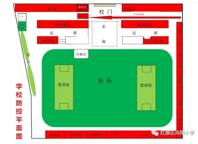 学校防控领导小组成员群策群力经历14天的朝思夕计,经过10余次科学研判、实地考证,5次校内调研、数据勘测,前后共计10次修订完善,最终学校善始善终、善作善成,谋无遗策形成终稿。方案中每一环节的策划都力争精准有效,每一区域的设计都是多点发力,每一细节的把控都深思熟虑。学校实行网格化管理、划小管理单位。如隔离室、物资储备室、警戒线、卡点设立等。领导小组弯下腰,卯足劲为学生安全复课保驾护航。