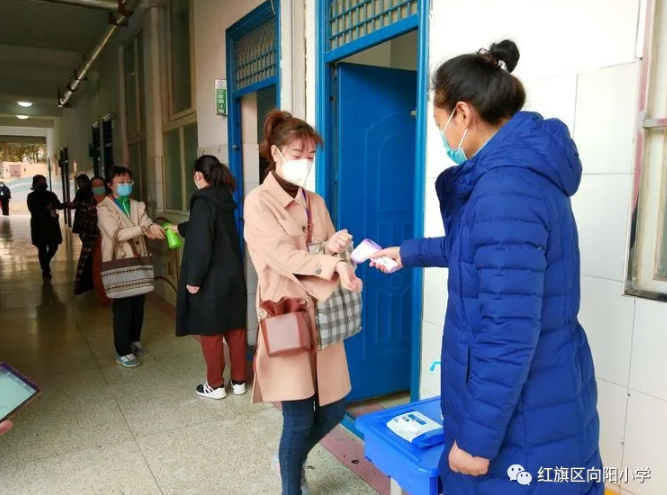 向阳小学实行错时、分单位进入。向阳新村内517名学生直接到校门口西队,进行测温、消毒入校。向阳新村外1326名学生从向阳新村东口进行测温、消毒进入,到校门口列队再次测温、消毒进入,守好入校第一关。