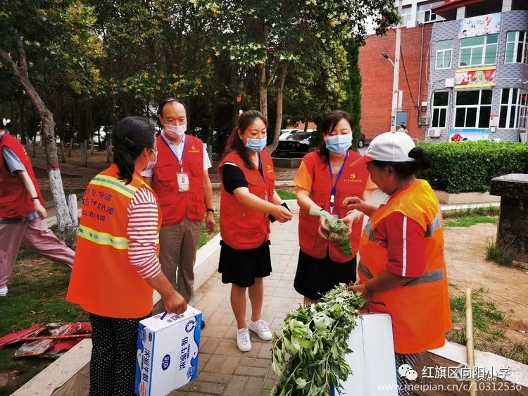 “真没想到端午节学校还能想着我们,心里感到非常高兴。”环卫工人王桂花激动的说。“我们每天一早就在向阳广场打扫,很辛苦。今天收到了礼物,感觉自己的工作得到认可,自己得到了肯定,非常欣慰。我会努力工作回报社会。”6月24日上午,向阳小学校长郝红梅,副校长申齐、郭国文带领“向阳花”志愿服务队,为在向阳广场辛苦劳动的环卫工人送去节日祝福和礼物。大家送上了精心准备的粽子、艾草、牛奶和食用油,这些礼物包含着对环卫工人的深情厚谊。