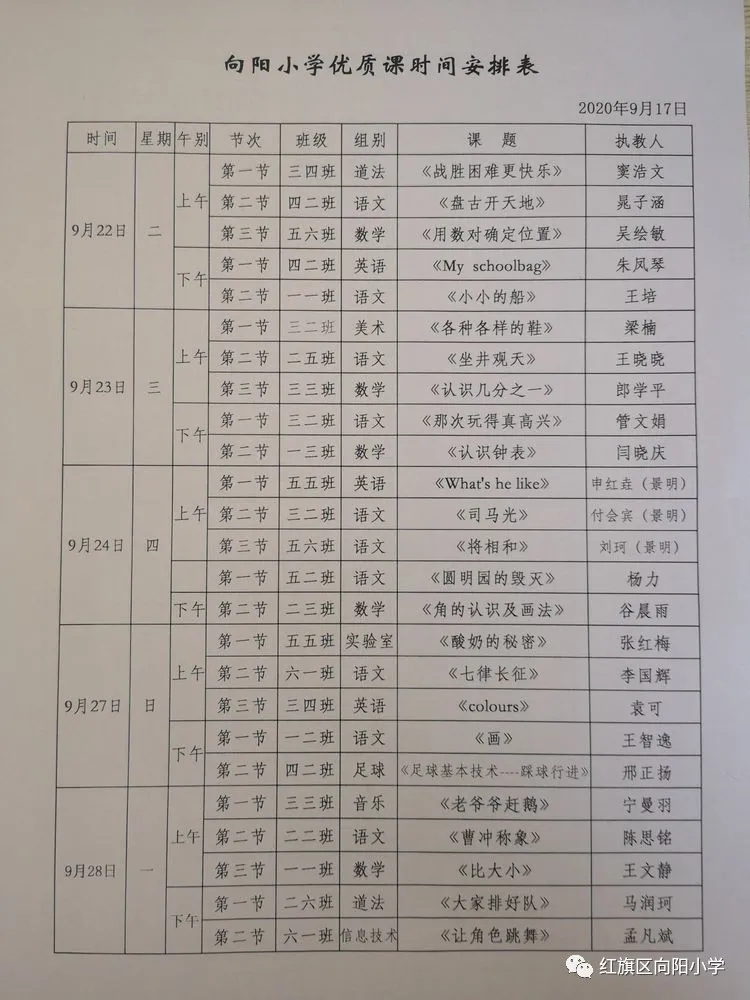 为进一步提高教师的专业素养和教学能力,夯实驾驭课堂教学的基本功,同时也为教师提供展示自我和相互学习的平台,促进教师快速成长,红旗区向阳小学本部及景明校区于2020年9月22日—28日举行了优质课展示活动。