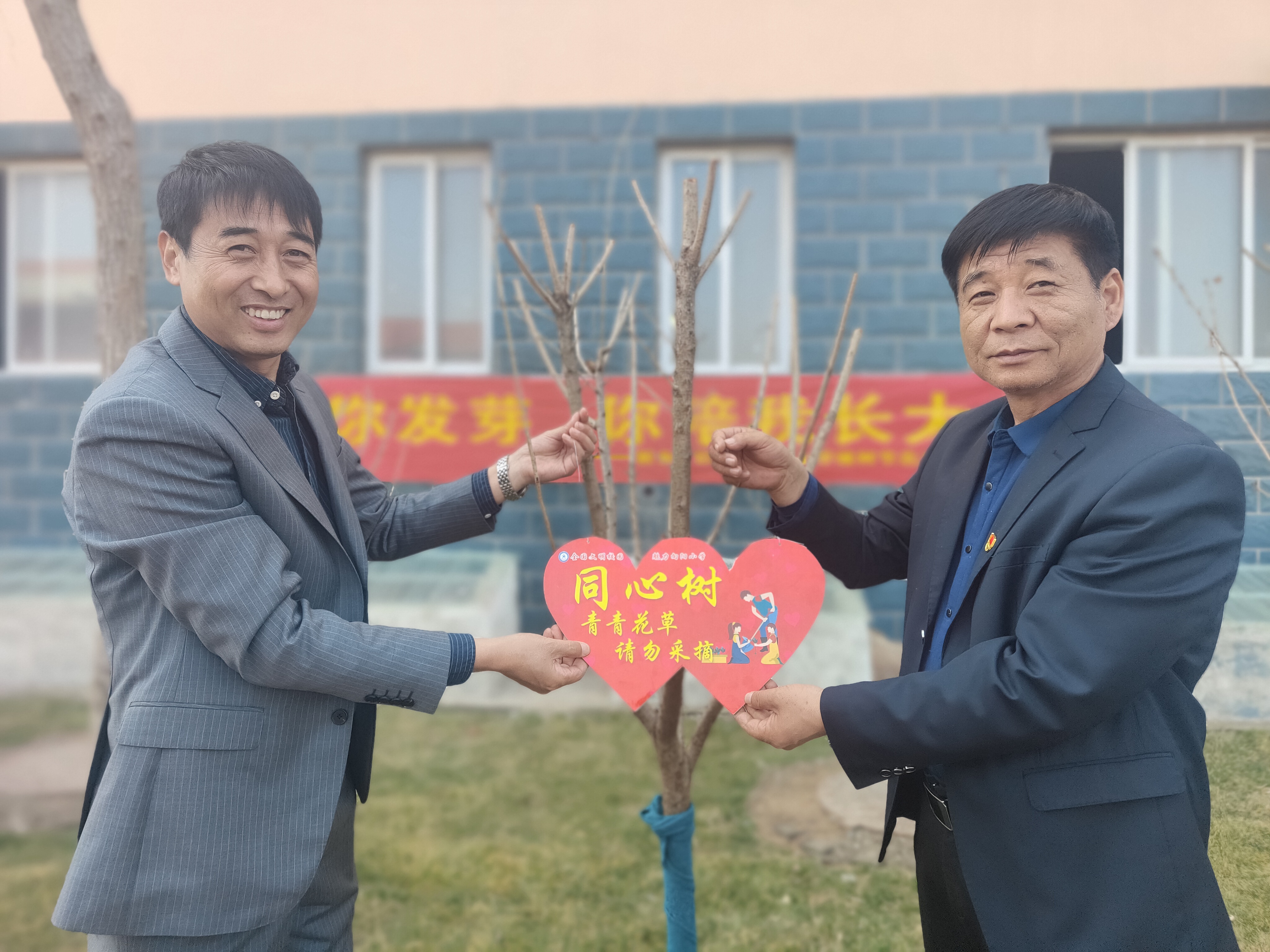 最后,在“我护你发芽 你陪我长大”护绿活动中,向阳小学校长王永明、副校长关瑞、景明校区校长闫道明共同带领志愿者和孩子们为两校的同心树浇水、培土,并挂上代表两校同心的花草牌,愿两校的学生在向阳与景明共同努力下,如同心树一样发芽、长大。