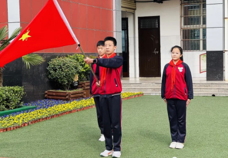 “我们是共产主义接班人,继承革命先辈的光荣传统……”全体少先队员齐声高唱《中国少年先锋队队歌》,嘹亮的歌声响彻校园上空。歌声里,见证着每位少先队员的努力与成长。