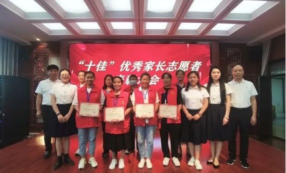 此次活动共两项内容:一是评选出2022至2023年度“十佳”优秀家长志愿者并进行表彰;二是为新加入的一年级家长志愿者授牌。