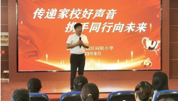 会上,王校长语重心长,铿锵有力的说:“学校的发展离不开家长的支持,在向阳小学未来的发展蓝图中,家校共育将是我们工作中永远的主旋律。请家长放心向阳小学将不负家长所托,办人民满意的教育,为每一位向阳学子撑起一片蔚蓝的天空。”
