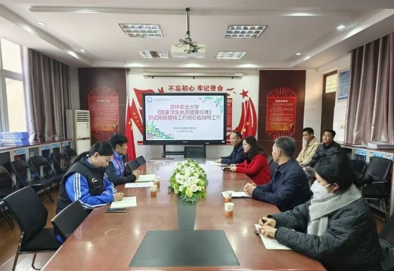 抽查复核测试工作开始前,专家组老师们到会议室听取了我校体育工作汇报。我校主管体育副校长郭国文同志从组织机构、体育课程设置、学校体育工作安排及体育工作所取得成绩介绍了我校体育整体情况。专家组对我校教师体育运动带领学生体育运动发展给予了充分肯定。