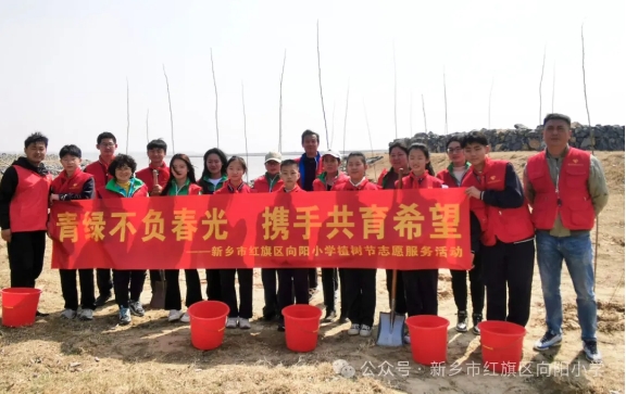 《礼记》云:"孟春之月,盛德在木",意即春天植树造林是最大的功德。植树造林是中华民族从古至今的传统美德。3月12日,恰逢第46个植树节,在校长王永明的的号召下,红旗区向阳小学“向阳花”师生志愿服务队一同前往黄河滩区开展“青绿不负春光 携手共育希望”主题植树节活动,用实际行动为黄河滩区增添一抹新绿,优化生态环境。