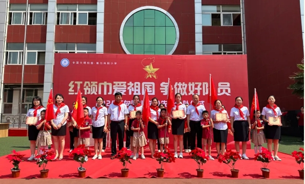 校领导为新中队授旗、颁发聘书,象征着责任和使命的传递。