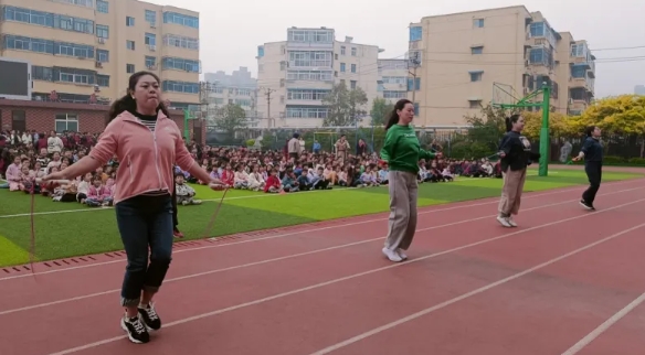 早在汉代,我国就有了关于跳绳的记载,汉代画像石上的跳绳图证明了当时已经有了跳绳活动。金秋十月,温度适宜,适合运动,2024年10月30日下午向阳小学举办了一场别开生面的教职工跳绳比赛。