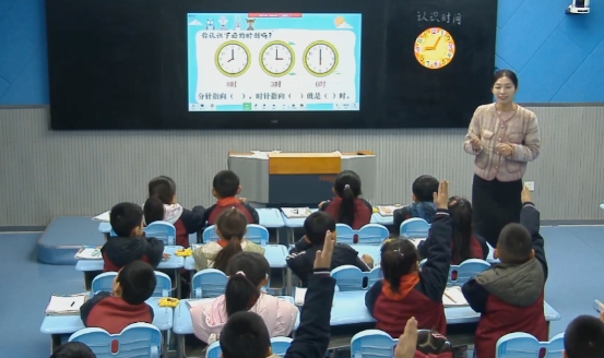 王亭然老师讲授的是人教版二年级数学《认识时间》,时间对于二年级的学生来说,是比较抽象的。老师从学生的生活实际出发,以学生从小到的变化视频导入,激发学生学习兴趣,利用直观教具时钟模型,让学生清晰的观察钟面,设计游戏环节,小组活动,动手拨钟表、认读时间等,鼓励学生主动思考,积极总结,提高了学生的参与度和合作能力,让抽象的时间概念变得更加具体可感,营造了和谐愉悦的课堂氛围,教育学生要珍惜时间,学会利用时间,做时间的小主人。