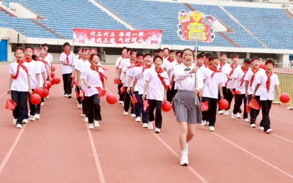 27日上午9时,运动会开幕式在庄严的国歌声中正式拉开序幕。国旗队、鼓号队、48个班级方阵迈着整齐的步伐,喊着响亮的口号,依次入场。同学们精神抖擞,口号声震天动地,尽显新时代少年的蓬勃朝气。方阵入场结束后,郭国文副校长发表了热情洋溢的致辞,运动员代表和裁判员代表依次宣誓。随着王永明校长宣布:2025年新乡市红旗区向阳小学教育集团“青春向阳”春季田径运动会开幕,整个操场上响起了热烈的掌声和欢呼声。