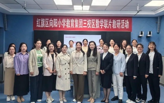 为深入贯彻新课程理念,推进小学数学“概念教学”实践研究,4月23日上午,向阳小学教育集团向阳、金穗及景明三校区联合举办以“新课标理念下‘概念’教学的实施与思考”为主题的数学教研活动。区教师进修校金志红副校长及教研员杜玉静、邵越鹏老师,三校区全体数学教师,红旗区各校数学教师代表共同参与。活动通过“同课异构”课堂展示、评课议课、专题讲座等环节,搭建教师成长平台,共探教学创新路径。