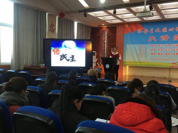 十二月二十日下午,在冬日的暖阳中,向阳小学高数组的社会主义核心价值观大讲堂——民主篇,开课了!本期社会主义核心价值观大讲堂以“民主”为主题,分为讲民主、学民主、唱民主、悟民主,誓民主五个环节进行。