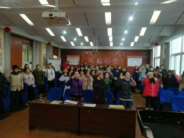 最后在民主的和谐氛围里,关校长带领全体老师许下承诺,用铮铮誓言点亮民主!