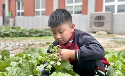 接着景明校区的范广兰副校长给大家讲解了“农时”的意义,让同学们了解到农时就是农业生产中顺应时节的时间安排,对于农业生产至关重要,它受气温、光照、降水等因素的影响,包含播种、施肥、灌溉、收获几个步骤。同时又带着同学们认识地里的白菜、萝卜、蒜苗,讲解它们的生长习性。